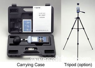 The SK-150GT is a handy type instrument that can measure temperature, humidity and globe temperature to approximate the WBGT index ( * ) .